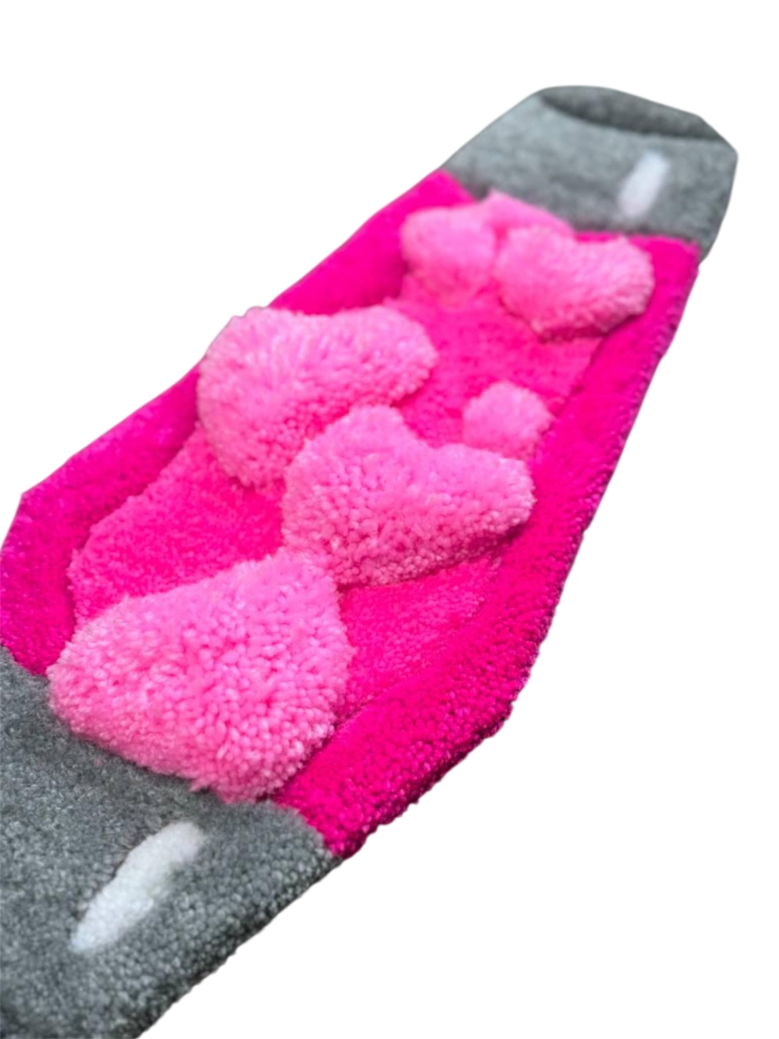 The contrast of metallic silver and vibrant pink creates a hypnotic, eye-catching focal point, while the rug’s texture and tufted detailing give it a premium, tactile presence. Perfect for studios, bedrooms, or any space where you want personality on the floor.